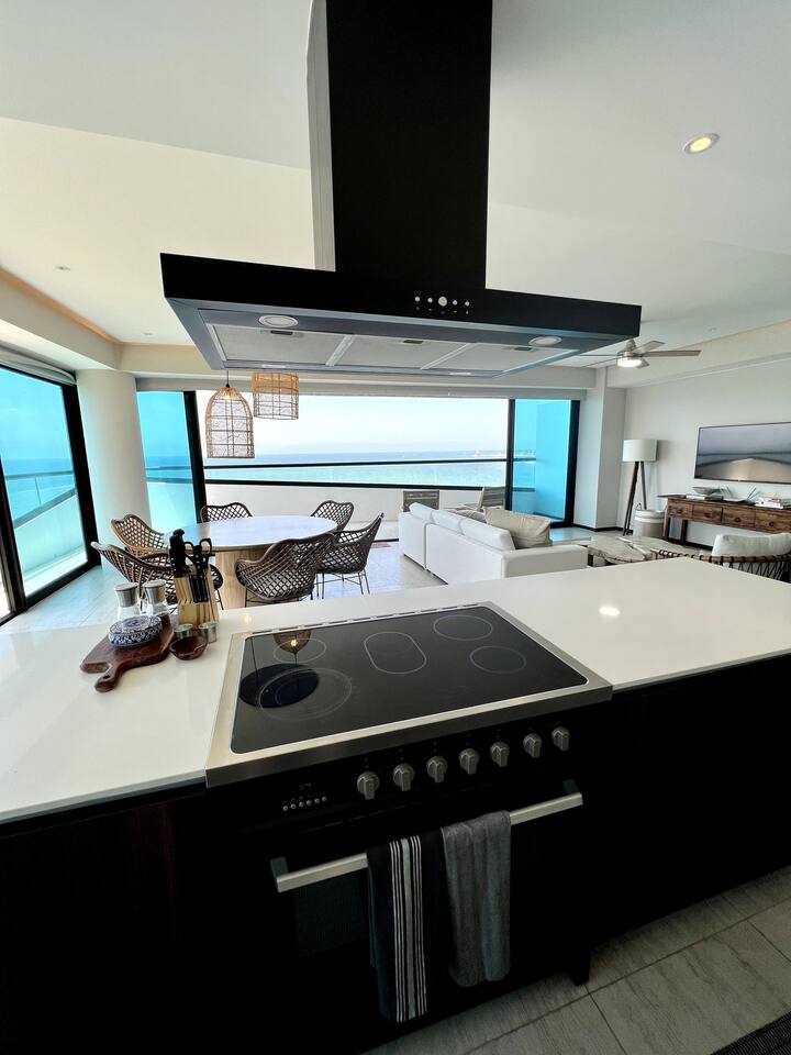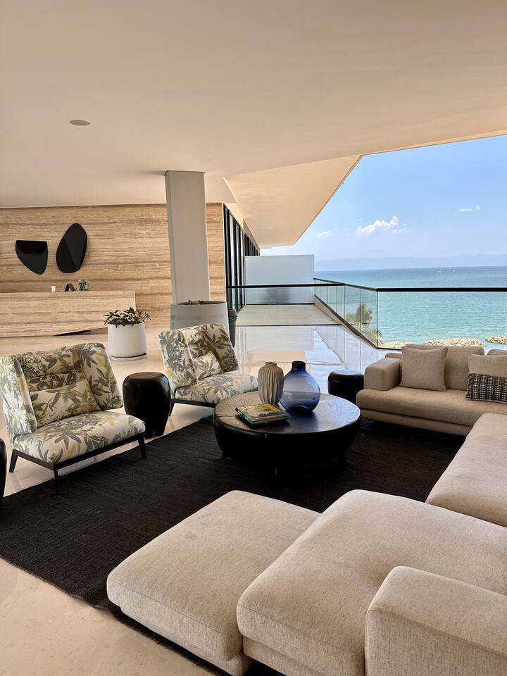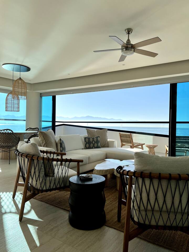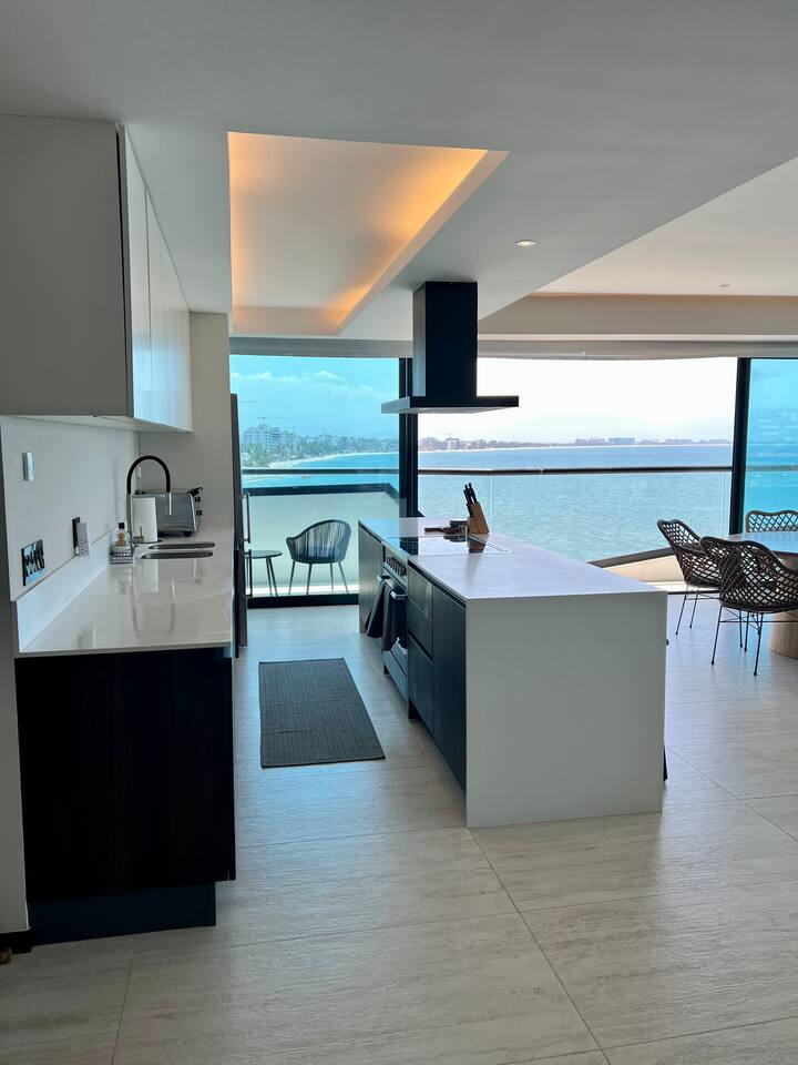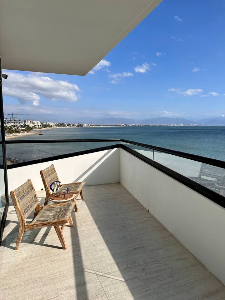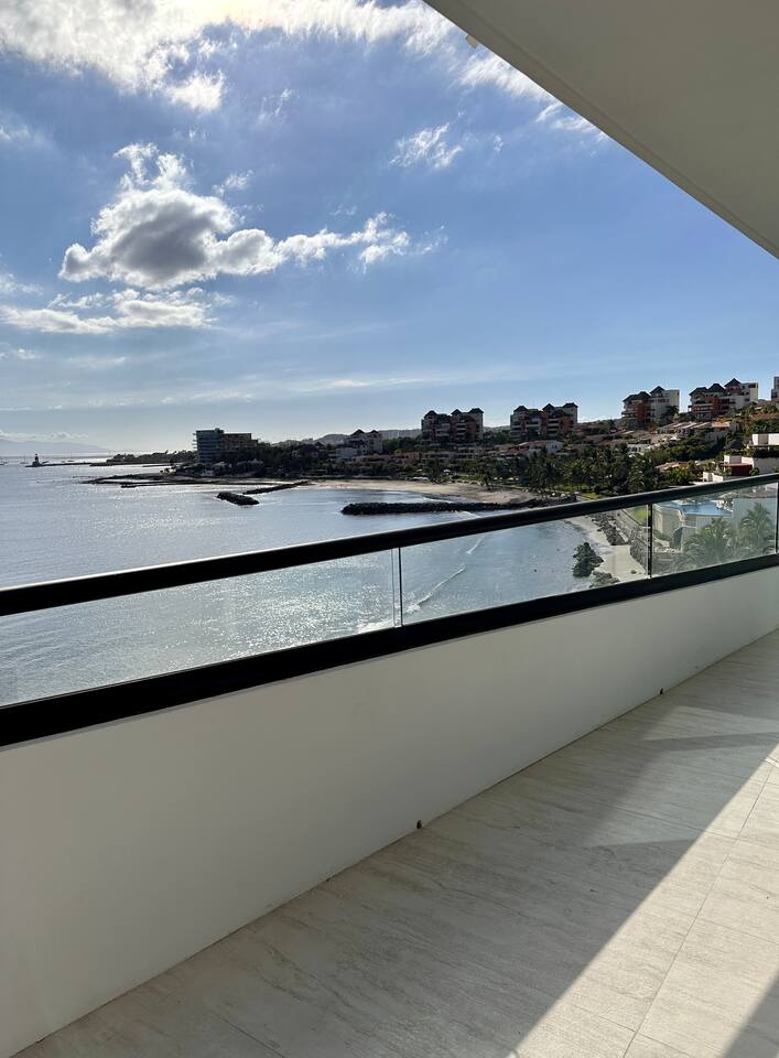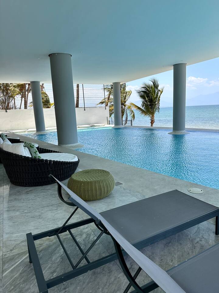 Luxurious Brand New Beachfront condo in Bucerias! This a spacious unit (1,800 sqft) with a large wraparound balcony opening to a breathtaking, 180-degree ocean view. Truly beachfront and dedicated to luxury and comfort. Automatic shades (push a button, take in the views) and 10' ceilings give you a sensation of open space. Enjoy the heated infinity pool, beach deck, elevator, lobby, gym, 24x7 gated security. Walk on the beach to Bucerias restaurants or quick drive to Punta Mita or Sayulita.