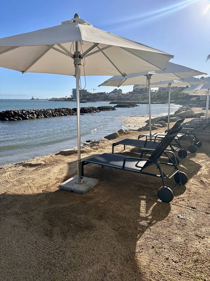 The condo is in an ideal location, only 15-25 minute drive from the airport (depending on traffic), walk to Bucerias Centro, ~15 minute drive to Punta Mita, ~10 minutes to Nuevo Vallarta and Vidanta, ~25 minutes to Sayulita and ~5 minutes to the Marina in La Cruz. There is a small restaurant in the pool area where you can buy beer/wine/cocktails and small plates like nachos and guacamole. It is open every day during high season and then on the weekends thereafter. There is also a new restaurant that opened directly beside us called Baklava and Sukha Beachouse is a 5 minute walk. Our beach is kid friendly because we created a breakwater / jetty to protect our beach which makes it very safe for children. The property provides sun loungers and umbrellas too. This is a "new" building that was delivered in 2023 about 1.5 miles (2.4km) north of Bucerias Centro in an absolutely beautiful beachfront location. We recently installed a beach deck in front of the pool that is flat and has rocks removed (picture show in the listing). *** NOTE *** 1. Direct bookings come with damage protection of up to $2,000 for your stay. The insurance fee is included in the pricing for your booking (applies only to direct bookings; Damage Waiver is Here: https://waivo.io/client/joshua-bradbury/. ) 2. IF you book more than 7 days then there will be an "additional" $40 USD cleaning fee (we will collect this fee after the booking is completed). This is to cover an additional cleaning for extended stays (this ensures that the property stays in tip top condition) 3. Absolutely NO pets or smoking allowed; fine of $1,000 USD if entry camera detects pets or any smoke smells in the house at checkout. Violators will be asked to leave immediately.
