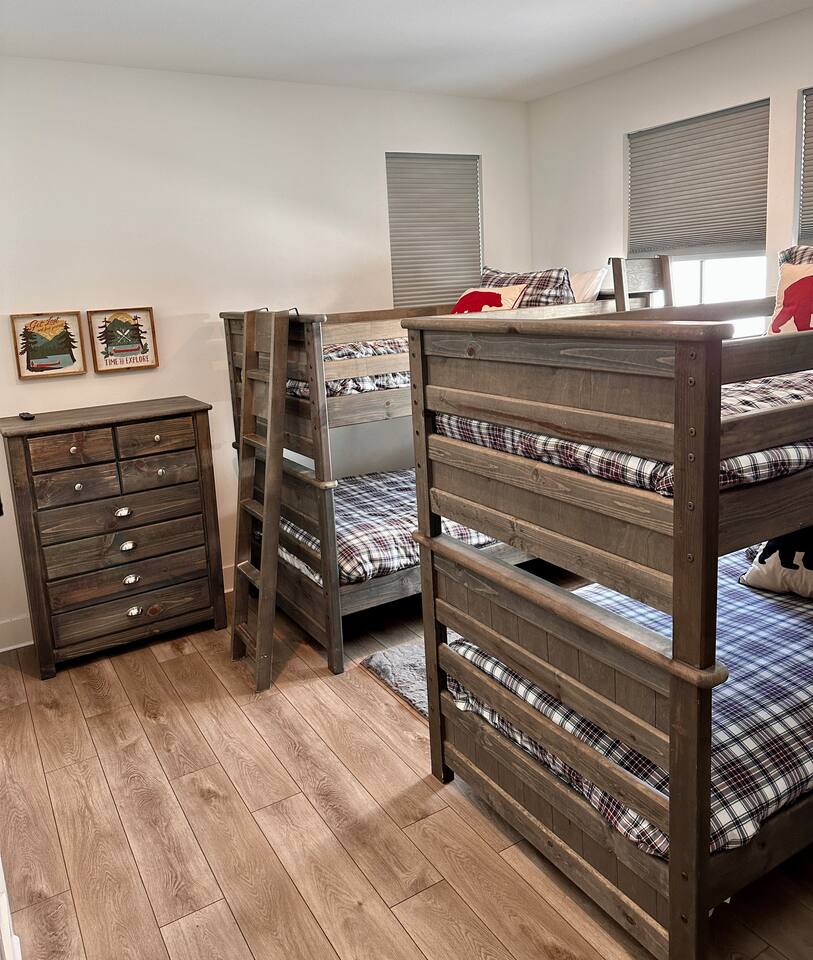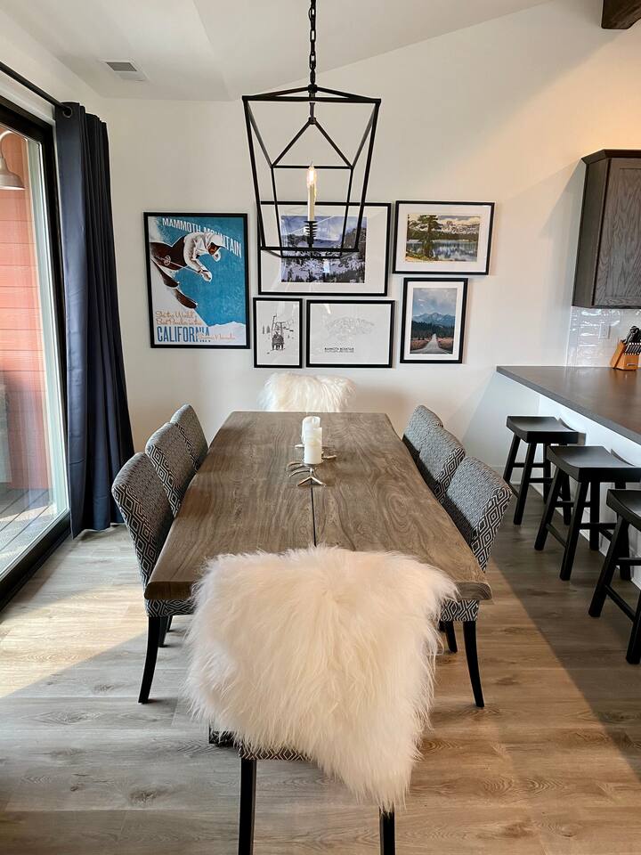 The Space This spacious and exquisitely designed cabin boasts high-end furnishings, vaulted ceilings, and large windows that frame panoramic views of the surrounding mountains. With a perfect blend of rustic charm and modern elegance, this cabin provides the ultimate in comfort and style. Relax in the cozy living area with a stone fireplace or unwind at the firepit while taking in the starlit night sky. Bedrooms Upstairs Primary Suite: King-sized bed, en-suite bathroom, with large walk-in closet and stylish decor. Downstairs Primary Suite: King-sized bed, en-suite bathroom, and a private balcony with mountain views. Bedroom 3: Two sets of twin bunk beds, en-suite bathroom, perfect for teens/kids. Kitchen The gourmet kitchen is a chef's delight, equipped with top-of-the-line appliances, including a KitchenAid 6-burner range, and everything you need to prepare delicious meals. Share your culinary creations in the dining area featuring a live-Oak edge dining room table seats 8 comfortably with 4 adjacent bar stools or on the outdoor deck with breathtaking mountain vistas. Outdoor Living Two expansive decks invite you to soak up the sunshine while surrounded by nature. Fire up the barbecue grill for a casual evening under the stars, or simply relax in the comfortable outdoor seating around the firepit. Entertainment Unwind with a movie night in front of the fire, enjoy a glass of wine or yummy hot chocolate from the Hot Chocolate Bar, or for or a friendly competition, open the basket filled with board games and puzzles for all ages. The cabin also gives you access to our community Clubhouse that has a hot tub, gym with Peloton, pool table and Foosball table. Convenience High-speed Wi-Fi Smart TVs with streaming services Washer and dryer Parking for multiple vehicles (garage and driveway) EV charger outlet (NEMA 14-50 outlet) Location Conveniently located just minutes from Eagle Lodge, this cabin is a gateway to year-round outdoor adventures. From skiing and snowboarding in the winter to hiking, mountain biking, and fishing in the summer, Mammoth Lakes offers activities for every season. Reserve your stay at our Luxury Mountain Cabin and experience Mammoth Lakes in unparalleled comfort and style. Create memories that will last a lifetime in this idyllic retreat. Book now for an unforgettable escape! Send me a message if you have specific questions on pricing or the property.